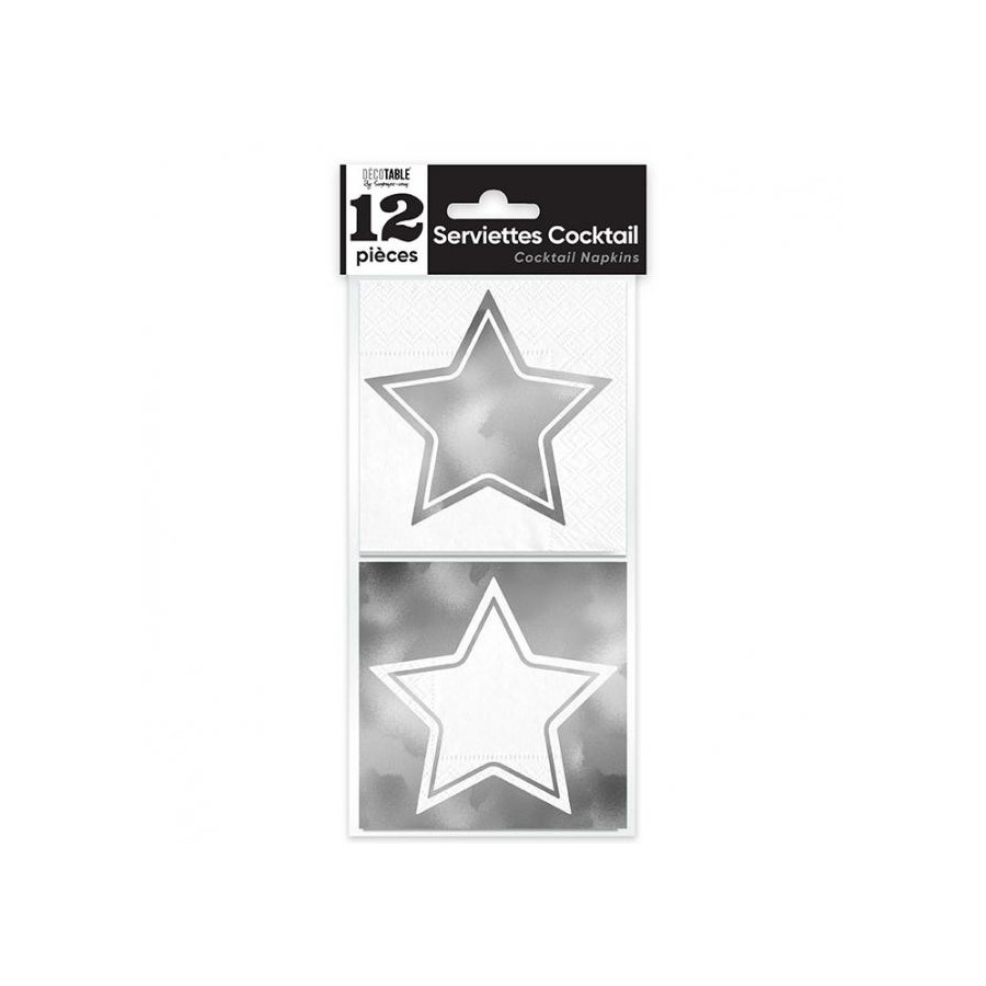 SERVIETTES COCKTAIL X 12 ETOILE ARGENT